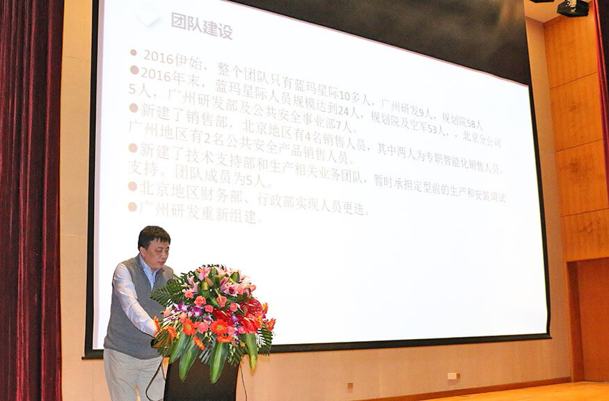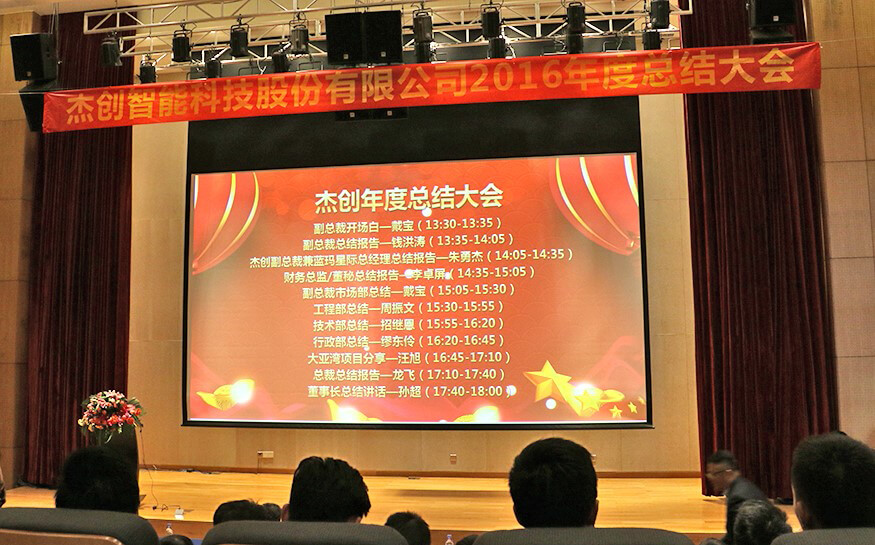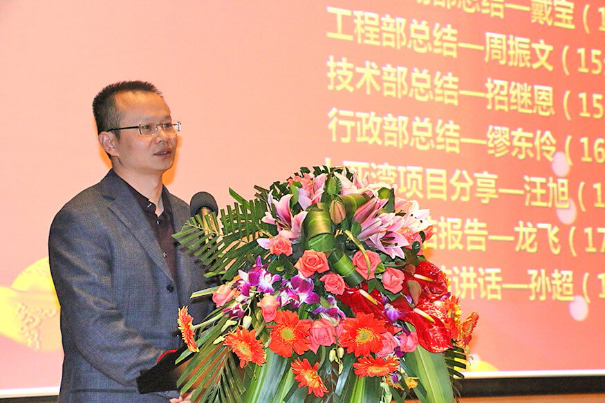 总结大会上,在公司副总裁戴宝先生激情洋溢的开场白后,副总裁钱洪涛先生、今年会jinnianhui智能董事兼蓝玛星际总经理朱勇杰先生、财务总监兼董秘李卓屏女士、副总裁戴宝先生、工程部总监周振文先生、技术部总监招继恩先生、行政部总监缪东伶女士、工程部副总监汪旭先生、总裁龙飞先生先后登台,分别做了2016年度工作总结。